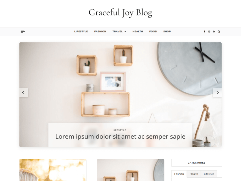 Graceful Joy Blog is a free, modern, and minimal WordPress theme designed to bring a fresh and elegant look to any website. Highly versatile and visually appealing, it’s perfect for lifestyle, fashion, travel, tech, health, fitness, beauty, food, news, magazine, personal, and professional blogs.